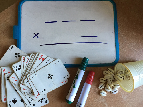 A nice game to help children practice their advanced multiplication skills is the Bean Pot Multiplication. It doesn’t require much preparation and you can easily have a quick game with your child. As an adult playing with a child though, as he is likely to make more mistakes than you, I would not give out a bean to each player for having a right answer. Instead, I would keep as only rule that each player can only win his bean for highest result if his calculations are right. I wouldn’t extend that game for too long either and would call out the winner to be the first person to win three beans.